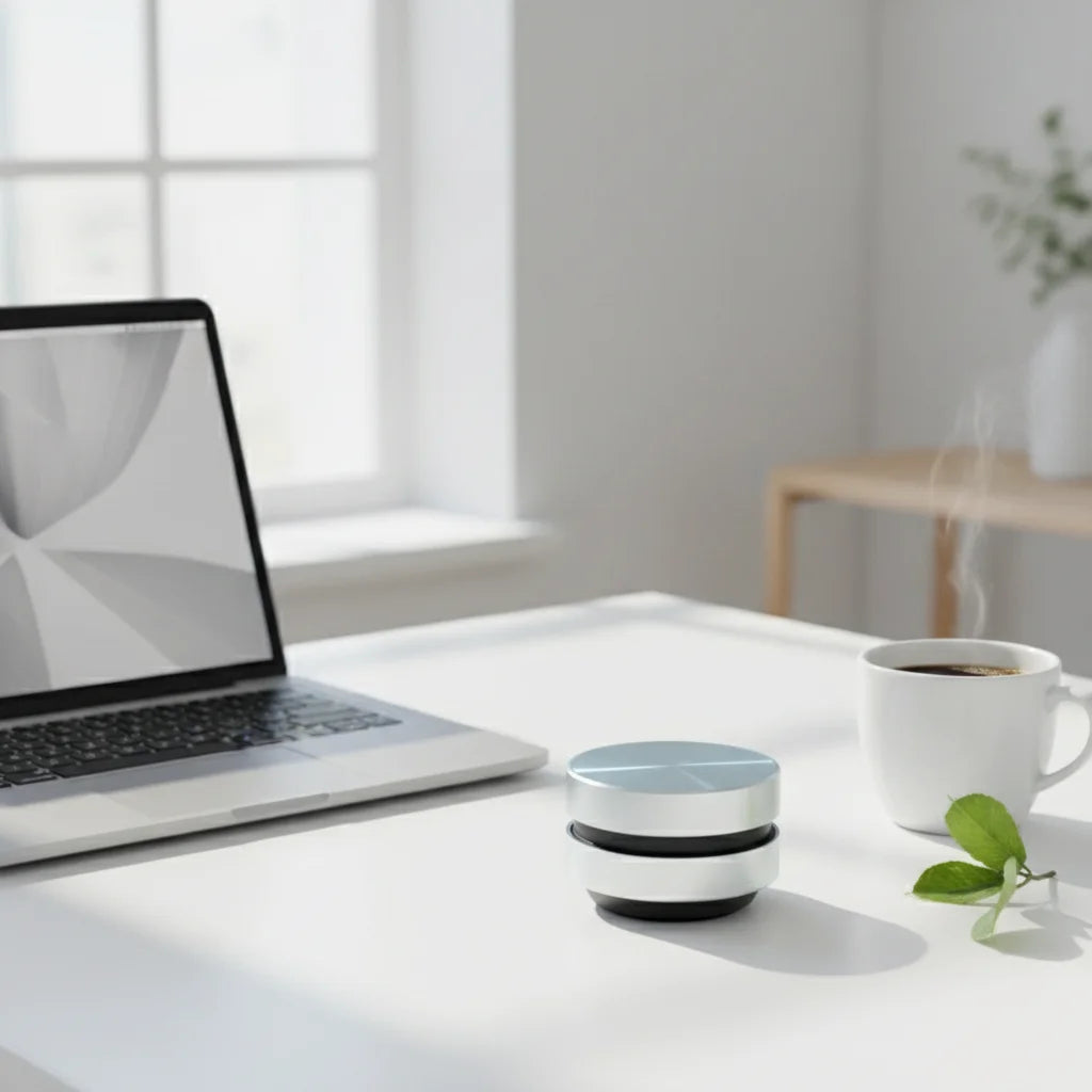 Okay, this thing is unreal! I can't believe the sound quality from something so tiny. It's like having a concert in my head without headphones. Perfect for my desk and travels. Everyone asks about it. Seriously, if you're on the fence, just get it. You won't regret it. Thank you for making such a cool gadget!